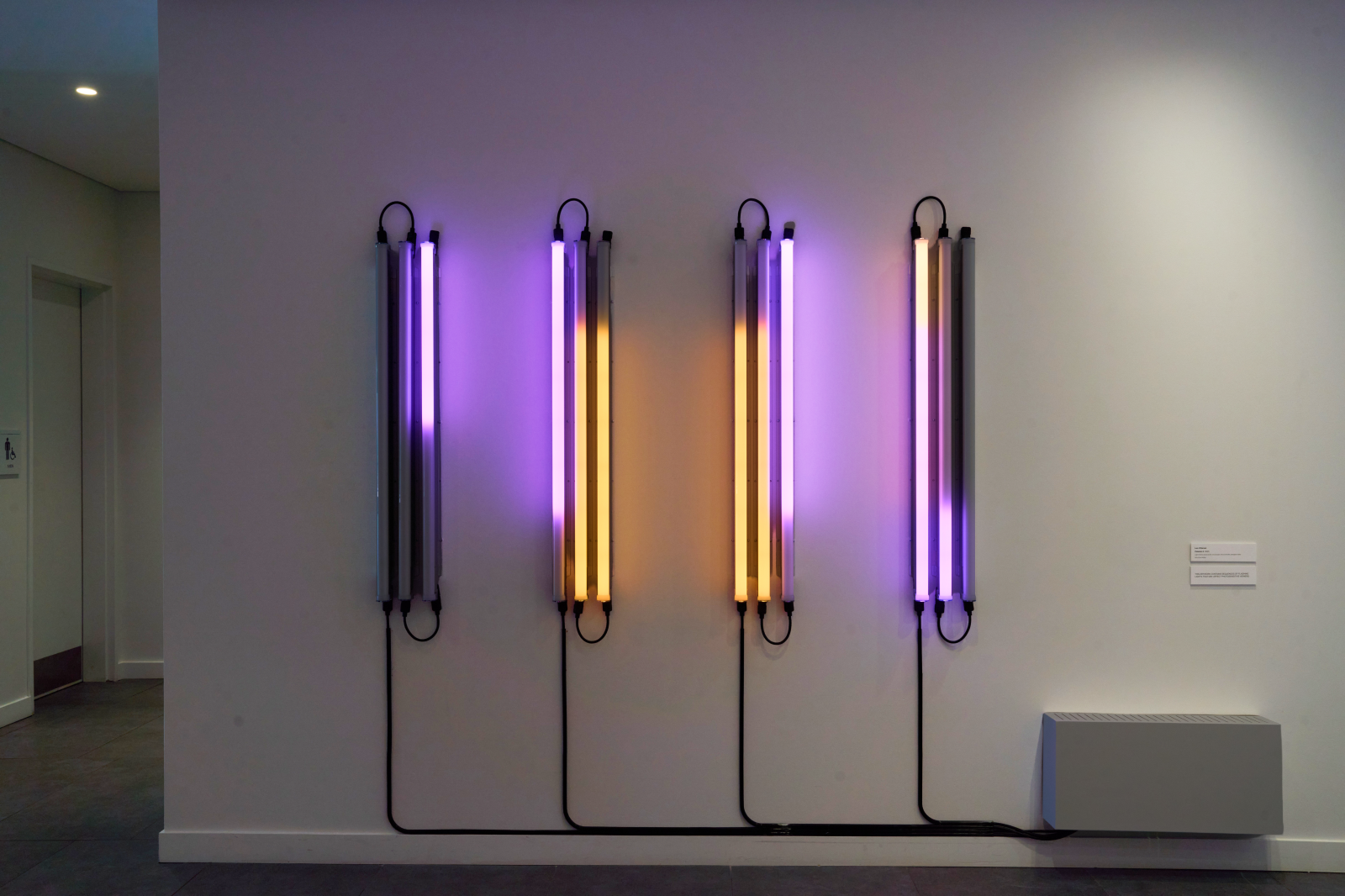 Made in 2005, five years before Villareal created Radiant Pathway, Columns 4 (4) exemplifies the artist’s early interest in the visual manifestation of computer code through light. Inspired by pioneers of Minimalism, Conceptual Art and the Light and Space movement, including artists featured in the Rice Public Art collection such as James Turrell and Sol LeWitt, Villareal’s approach experiments with pattern, color, and light using rule-based systems to vary frequency and intensity, while enabling open-ended atmospheric, phenomenological effects.