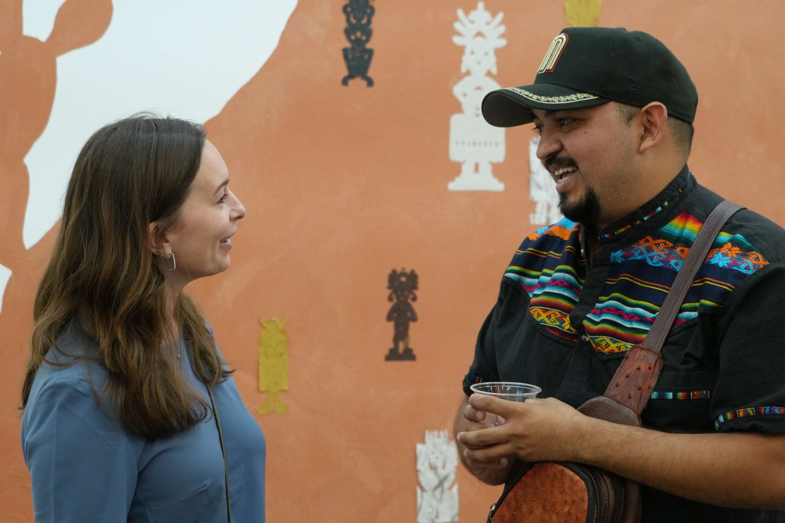 On October 3, 2025, we celebrated an original work from Guadalupe Hernandez commissioned for the Fall 2025 Moody Project Wall. Organized in conjunction with Hispanic Heritage Month, the event included remarks from the artist and a special offering of tamales and Mexican hot chocolate. Guests learned more about the work, titled "Hijos de la Virgen morena," and the creative contributions of Rice students who crafted papel picado elements through a series of artist-led workshops.