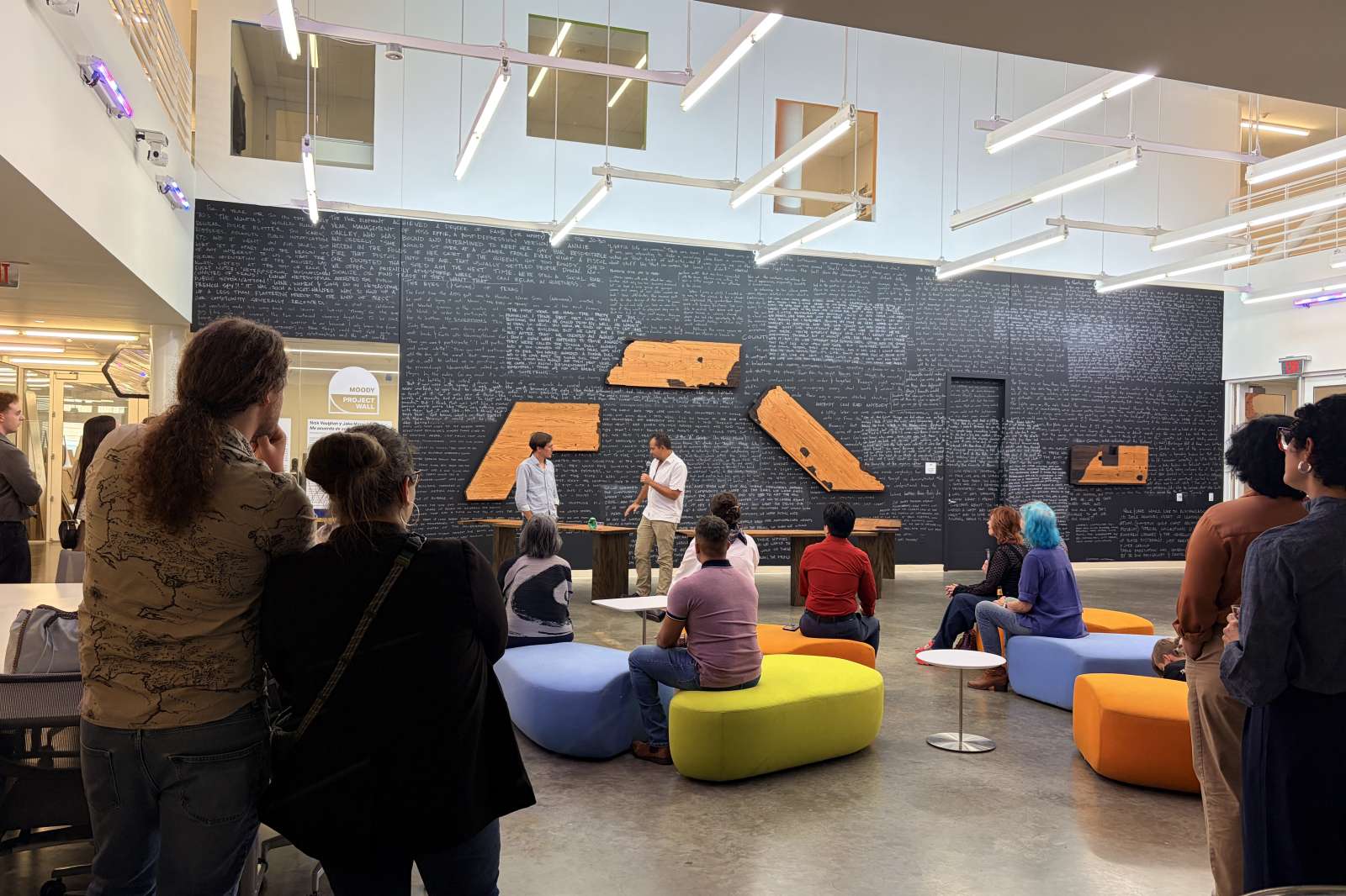 On April 2nd, guests joined us to celebrate the opening of Moody Project Wall: Nick Vaughan and Jake Margolin. This collaborative installation titled, I remember this one time. . . includes personal memories, archival histories, images, objects, and ephemera collected from Rice students and the Houston area, amplifying LGBTQ+ visibility.