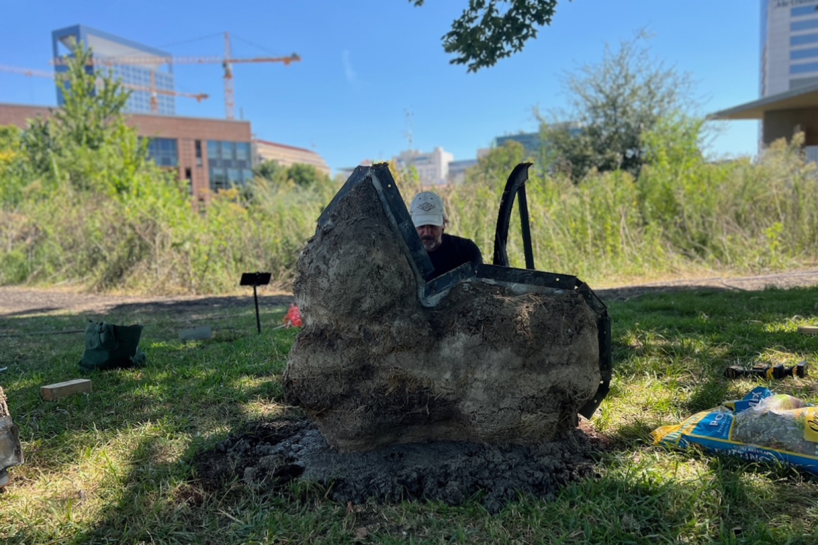 These two sculptures, created by a team of Rice students, faculty, and volunteers in collaboration with the artist, were initially molded in the shape of the scat of the Houston Toad and the Attwater’s Prairie Chicken. The organic materials that comprise the works will naturally decompose, contributing seeds from geo-specific native endangered plants to the Harris Gully area. Both the Houston Toad and the Attwater’s Prairie-Chicken are endangered species, facing decline due to habitat loss, climate change, and other factors. Efforts are currently underway by the Houston Zoo, the Attwater Prairie Chicken National Wildlife Refuge, and other conservation organizations to protect and preserve these important local species. Learn more through the links below.